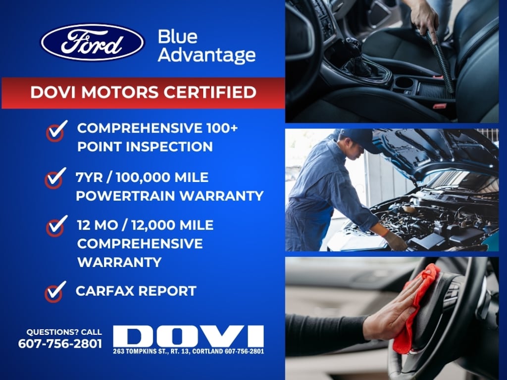 - Ford Blue Advantage Gold Certified (172-point inspection, 12-month/12,000-mile comprehensive warranty, 7-year/100,000-mile powertrain warranty, 24/7 roadside assistance)